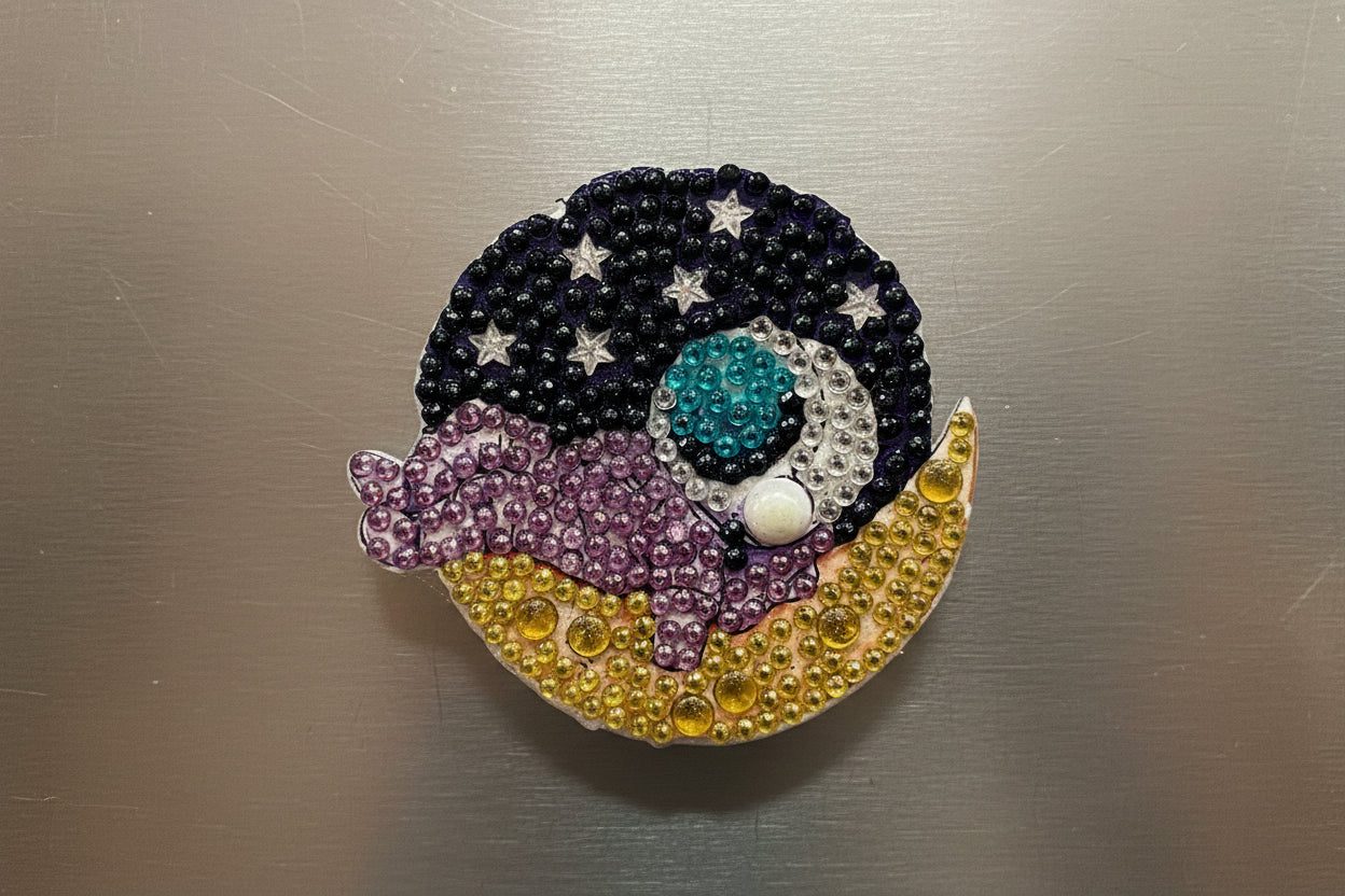 Bring cosmic wonder to your space with these handmade diamond dot magnets featuring captivating astronaut designs. Each magnet is individually crafted with meticulous detail, showcasing unique space explorers in their element. Perfect for personalizing your fridge, office, or any magnetic surface, these charming pieces celebrate the spirit of adventure and discovery. Ideal for space enthusiasts, collectors, and anyone who loves a touch of celestial charm in their everyday décor.